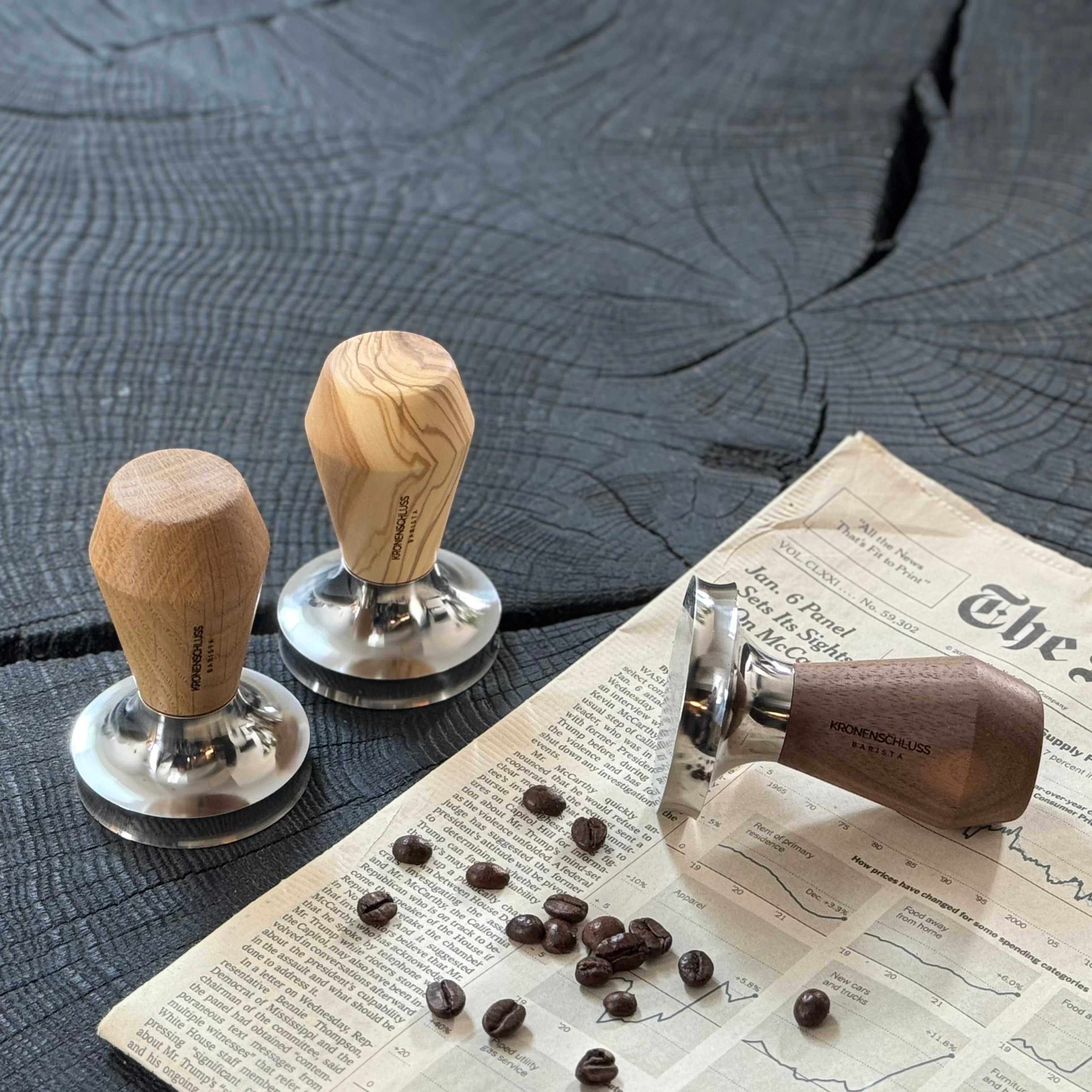 Wir sind Fabi und Felix, die Gründer von Kronenschluss – der eine Schreiner und Designer, der andere Energiewirtschaftler. Vor Jahren entdeckten wir unsere Leidenschaft für Kaffee, stellten jedoch schnell fest, dass nahezu das gesamte Kaffeezubehör in Fernost gefertigt und anschließend importiert wird. Dies ist aus vielerlei Hinsicht problematisch. Die langen Transportwege führen zu einem immensen CO2-Ausstoß, ungenügende Qualitätsstandards resultieren in fehlerhafter Verarbeitung und, und, und… Die Liste ist lang!