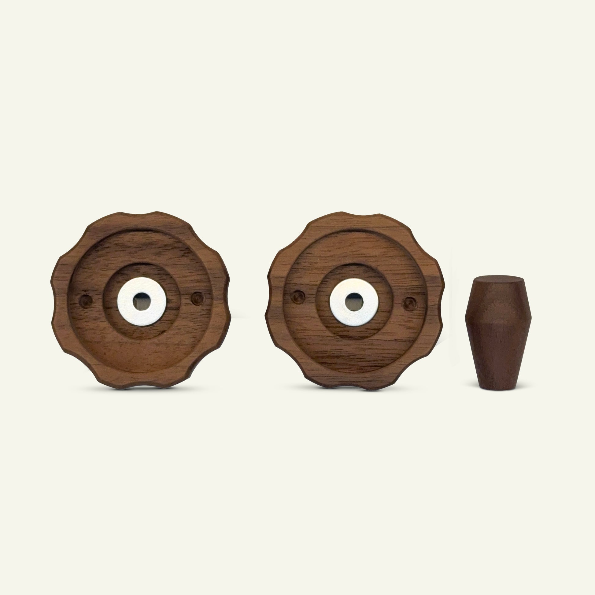 Unter Wahrung der natürlichen Echtholzcharakteristik werden die Griffe geschliffen und mit einem lebensmittelechten Lack versiegelt. Die Lackierung dient der Oberflächenveredelung, wodurch sich die besondere Charakteristik jedes einzelnen Griffs hervorhebt. Dabei bleiben die schöne Porenzeichnung sowie die natürliche Haptik des Holzes erhalten. Die präzise verarbeitete Metallscheibe besteht aus rostfreiem Edelstahl und vereint Langlebigkeit mit hoher Qualität.