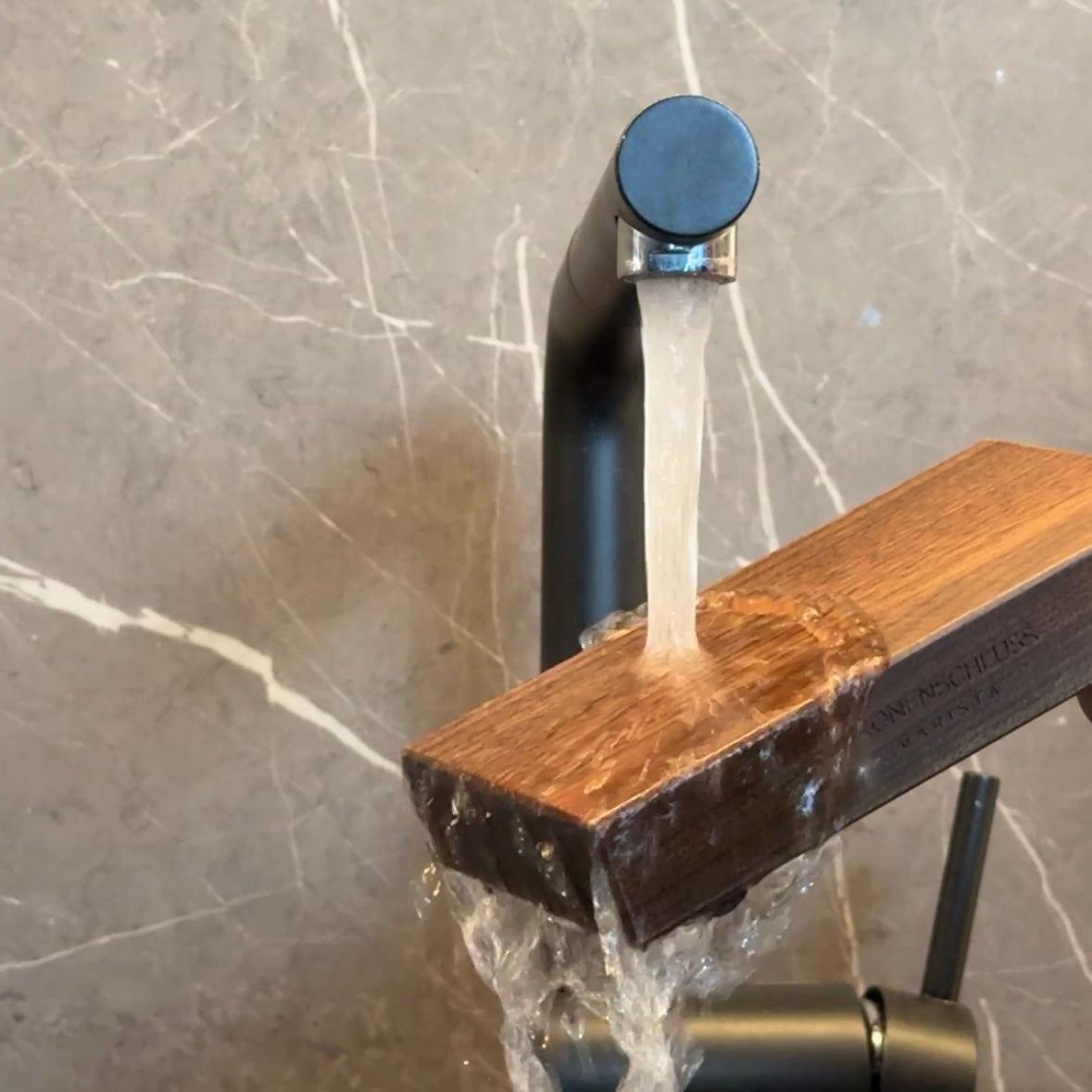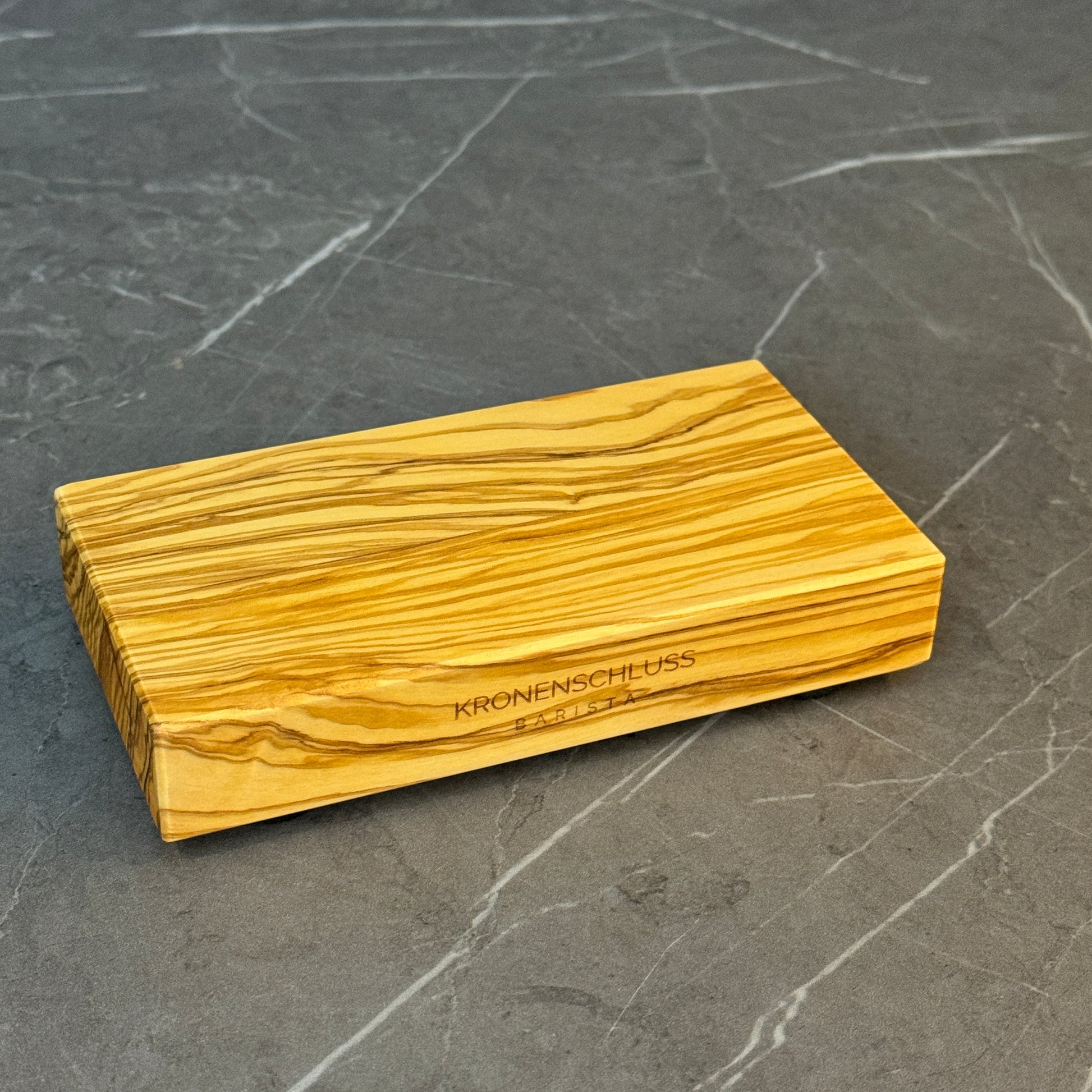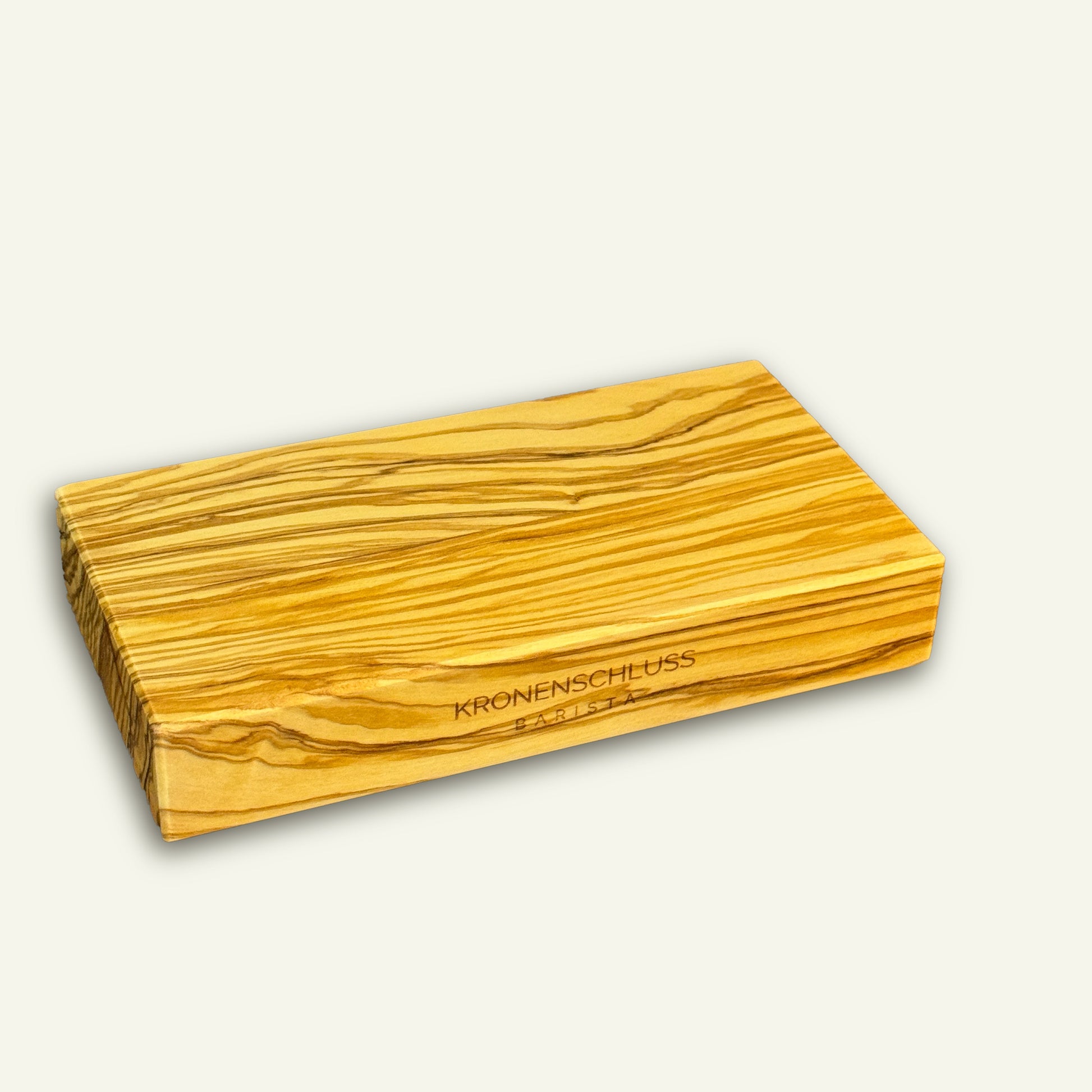 Unter Wahrung der natürlichen Echtholzcharakteristik werden die Tassenerhöhungen geschliffen, mit Epoxidharz behandelt und mit lebensmittelechtem Lack versiegelt. Das Epoxidharz sorgt für die nötige Wasserfestigkeit, während der Lack die Oberflächen veredelt und die besondere Charakteristik jeder Tassenerhöhung hervorhebt. Dabei bewahrt die Lackierung die schöne Porenzeichnung sowie die natürliche Haptik des Holzes.