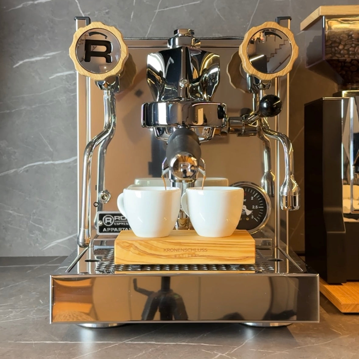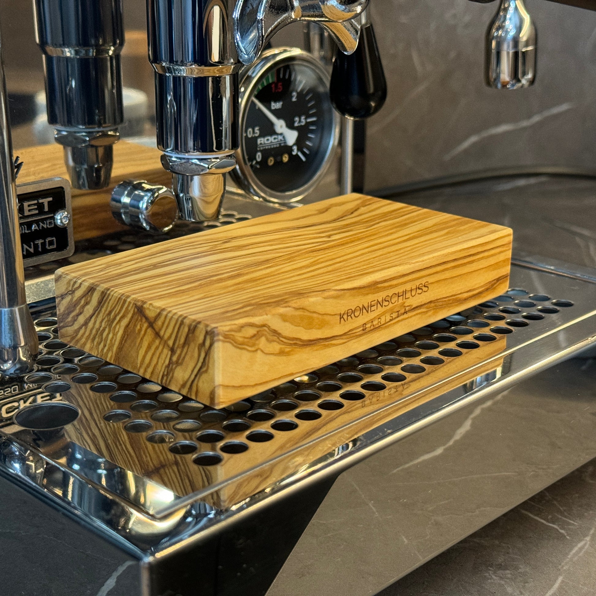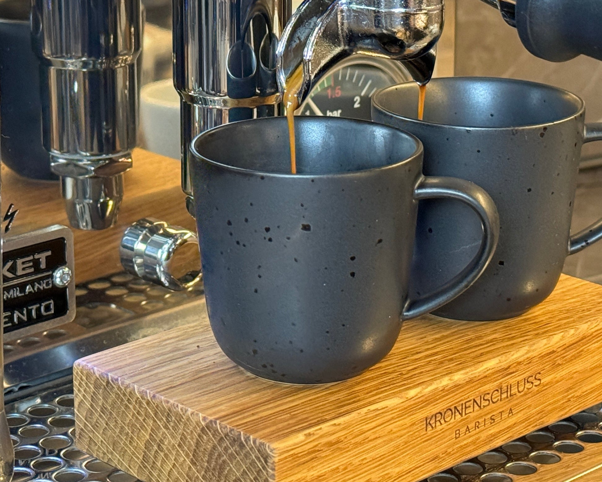 Bei vielen Siebträgermaschinen ist die Fallhöhe zwischen Auslauf und Tasse zu hoch. Dies führt dazu, dass der Kaffee schneller abkühlt, die Cremaqualität leidet und lästige Kaffeespritzer entstehen. Mit der Kronenschluss-Tassenerhöhung steht Deine Tasse immer in der idealen Höhe und somit dem perfekten Kaffee nichts mehr im Wege.